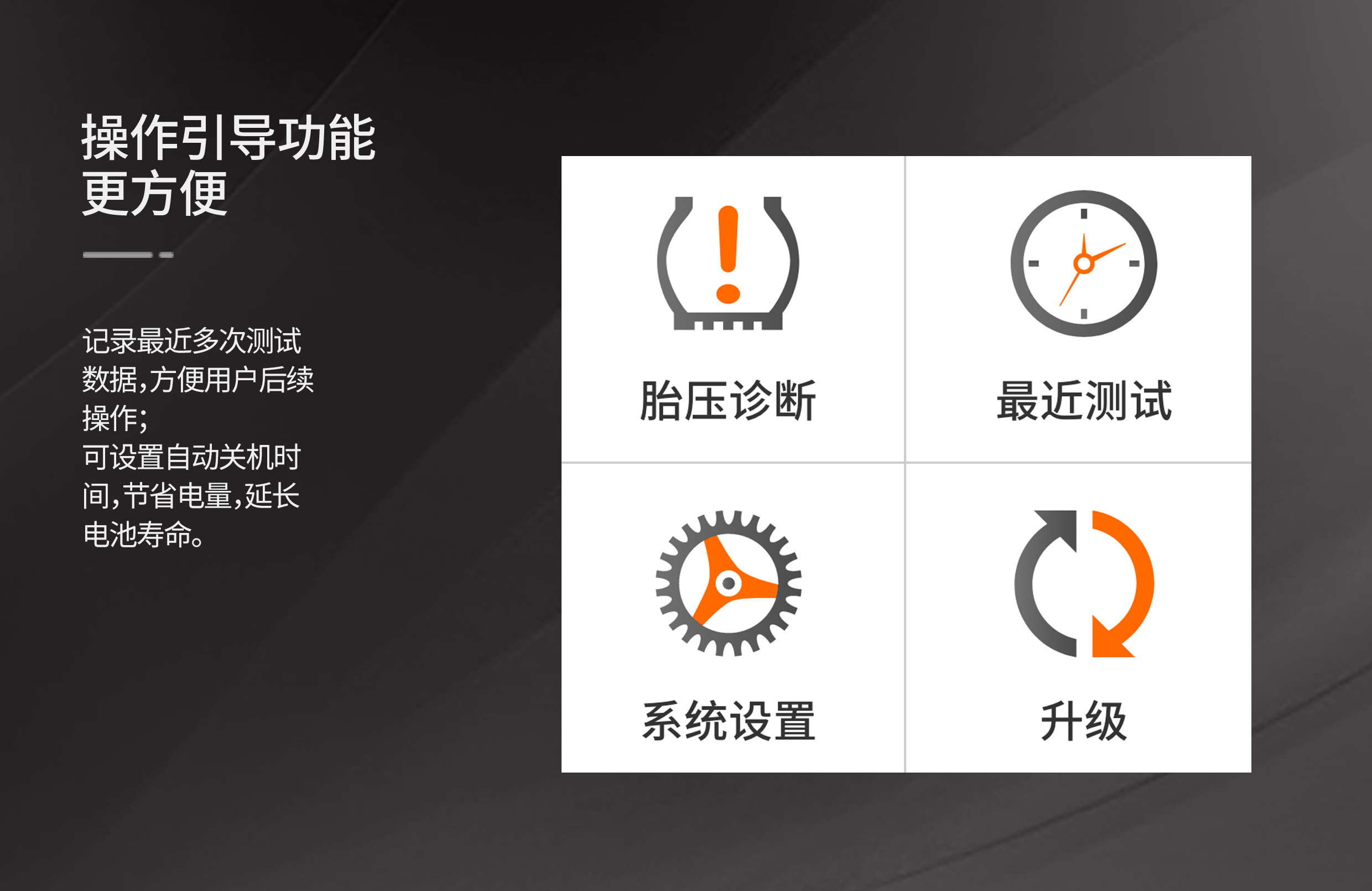 ● 采用进口高端的NXP NTM88芯片,压力值精确到0.1BAR。