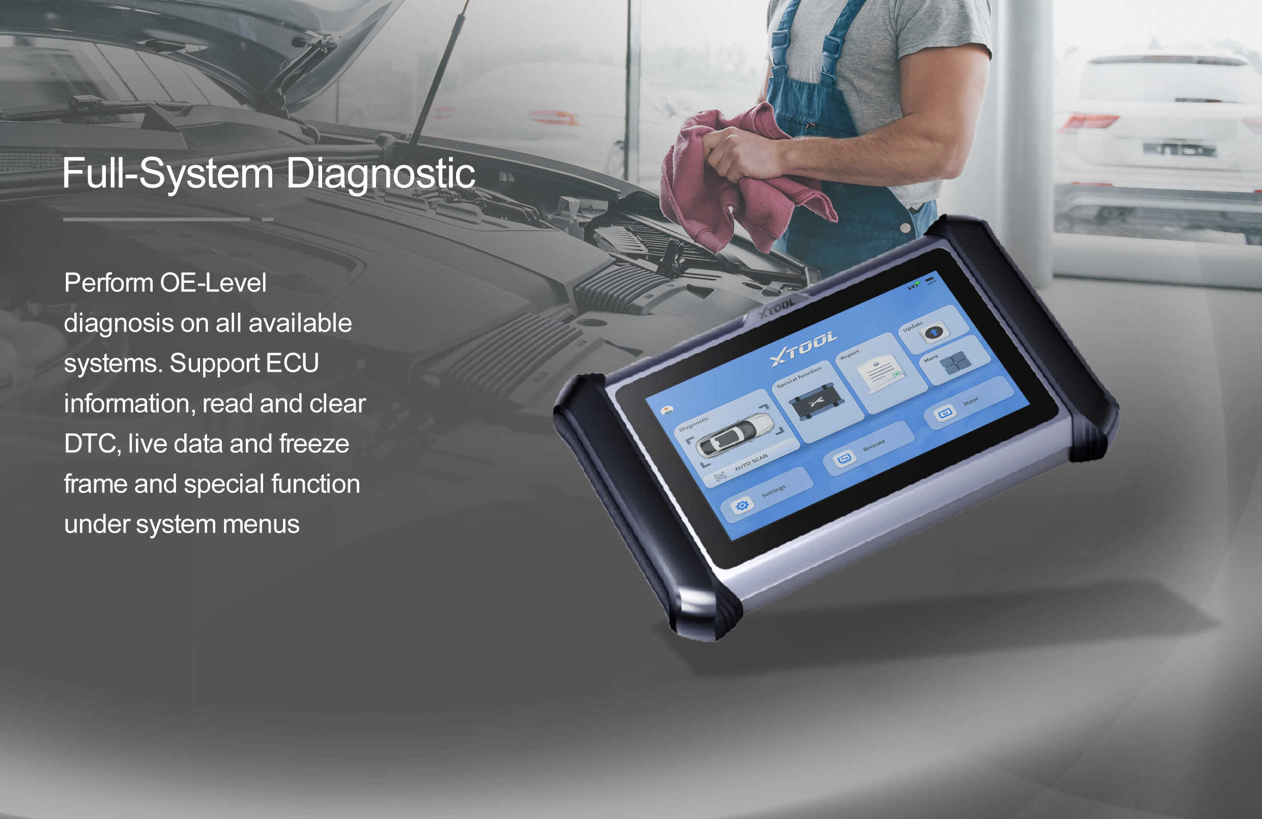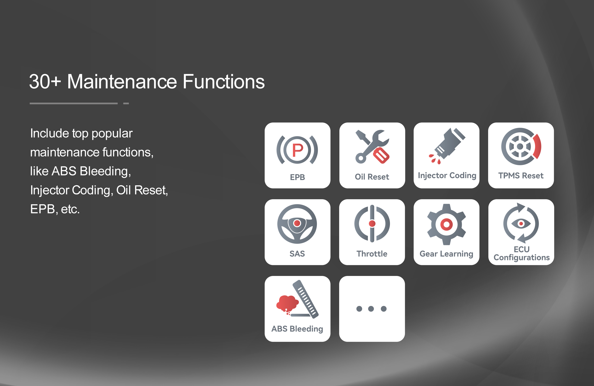 30+ common special functions are supported, such as throttle matching, ABS bleed, maintenance light reset, EPB test, SAS, BMS, injector coding, DPF regeneration, and TPMS reset. 98% vehicle coverage, work on more than 100 brands, 10000 cars.
